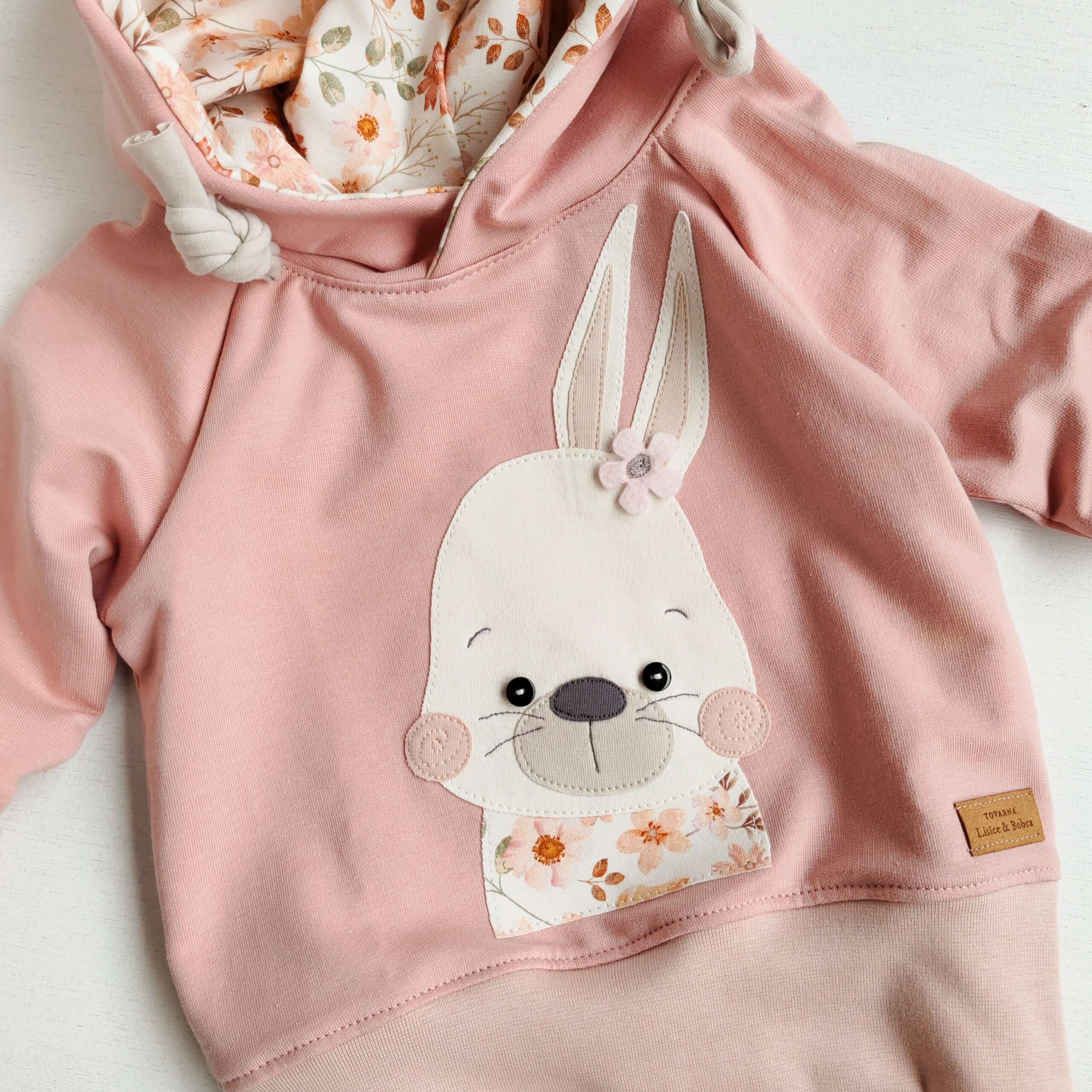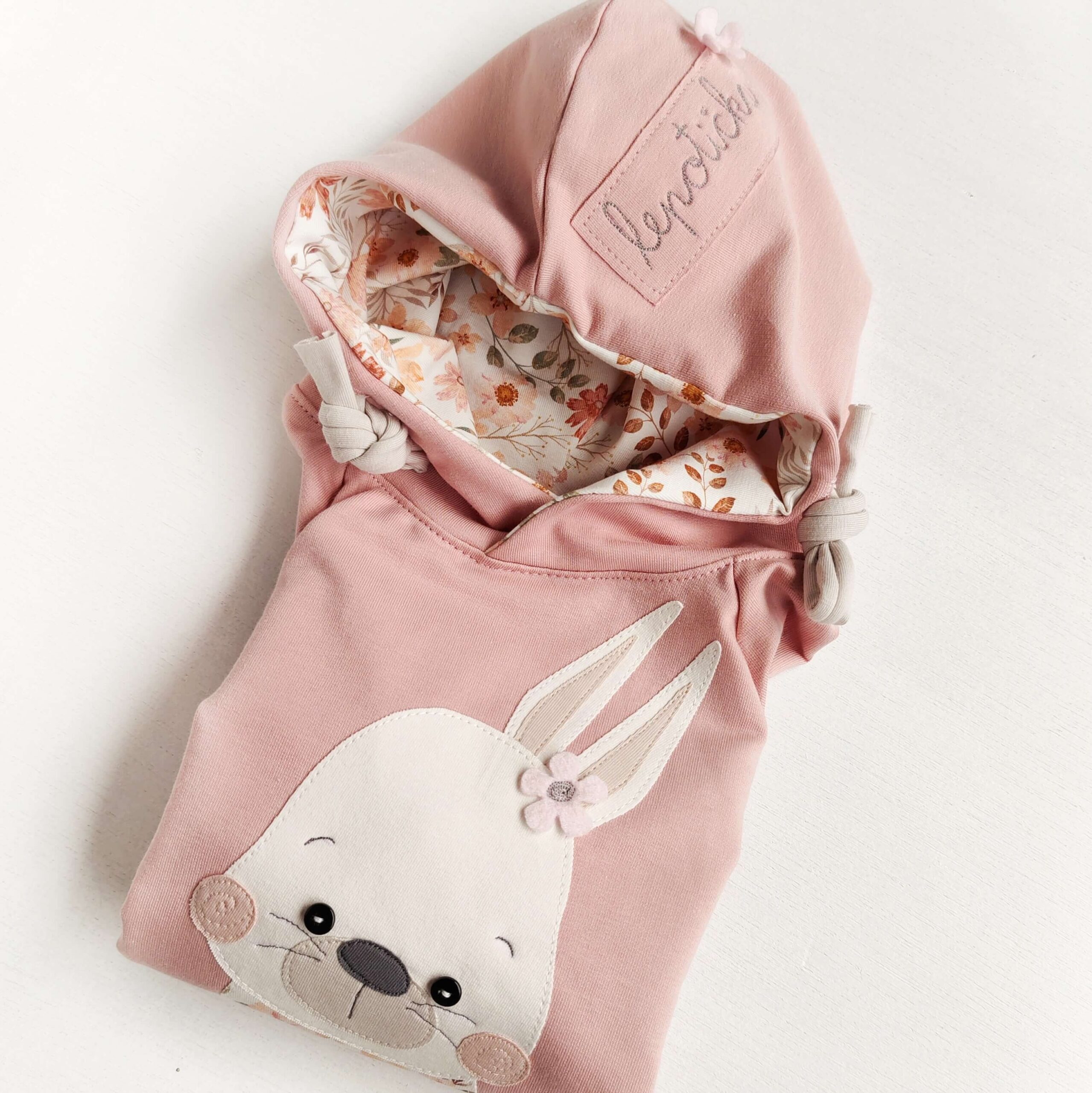 Poznaš kakšno lepotičko, ki obožuje zajčke? Potem je kapucar pred tabo prava izbira. Pulover v nežni roza barvi na sprednji strani krasi ljubka zajčica, na kapuci pa prostoročno zašit napis “lepotička”.